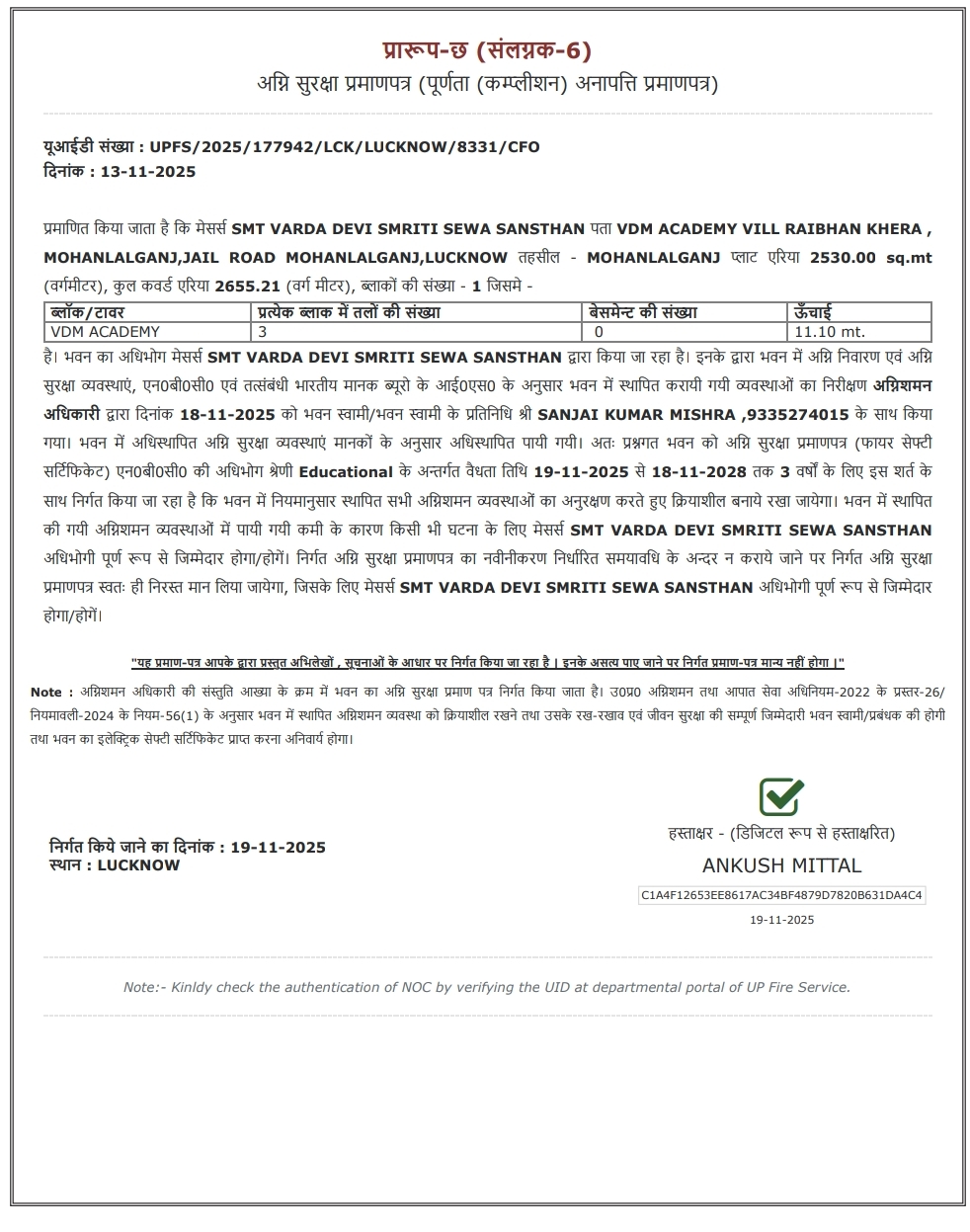 | COMPLETE ADDRESS WITH PIN CODE | VDM ACADEMY, Raibhan khera, Mohanlalganj, Lucknow-226301 |